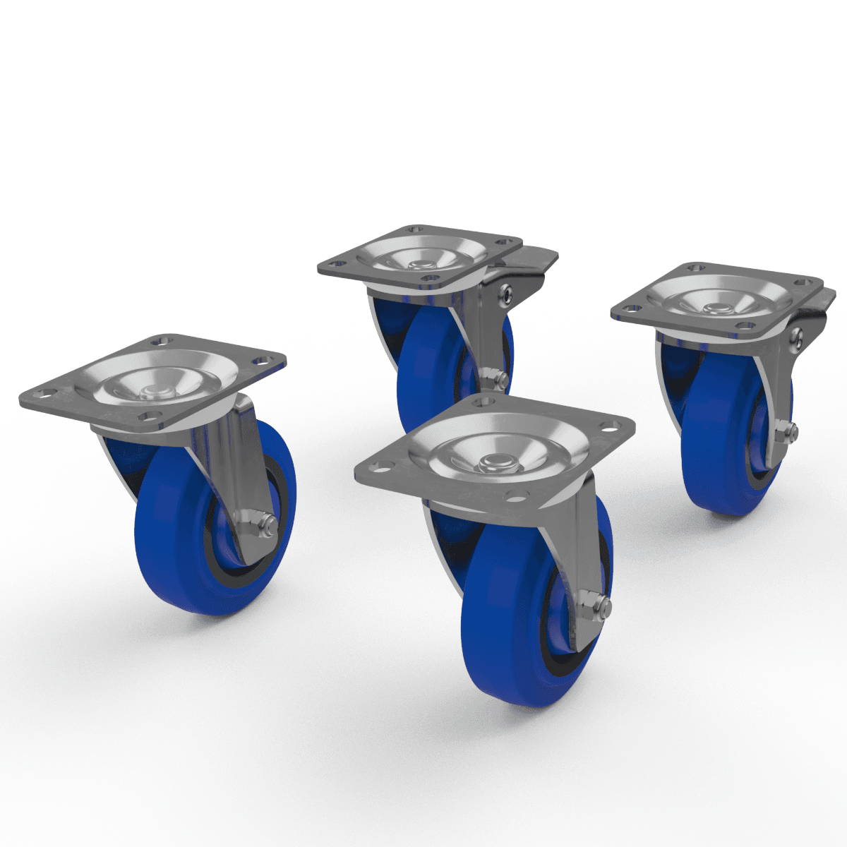 Side mount casters provide durable side attachments for lighter-duty items such as toolboxes and small carts. Stainless steel casters offer corrosion resistance in harsher environments and are ideal for food service applications. Rubber caster wheels reduce noise and vibration in hospitals and clean rooms, and casters with brakes are perfect to prevent the caster from rolling.
